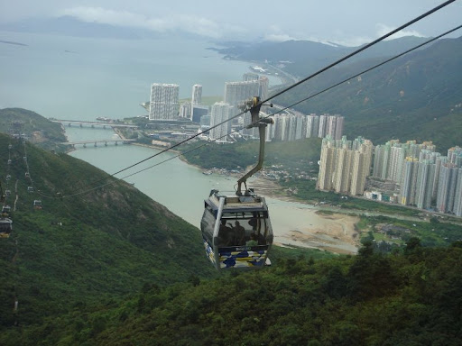 儘管已經數不清楚來過幾次香港,感覺好像行灶腳一樣頻繁,到了香港後也在東涌出出入入,可這還是第一次搭昂坪纜車耶。只不過來的不太是時候,時而風雨交加,忽而山頭煙霧裊繞,茫茫渺渺、淅瀝嘩啦。