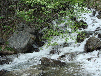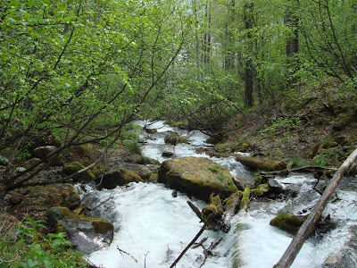 原來是我擋了牠要到溪邊喝水的路。牠可能渴得受不了,就直接從我旁邊大搖大擺的下到溪邊暢飲,這水好冰ㄝ,是山上融雪流下來的。