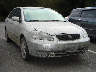 早上約 11 點從桃園交流道出發,在永興小館吃午餐,下午 4 點抵達武陵農場,經過一路泥濘,這是和我們在武陵農場會合的同事大炳座車,光是看他雪白的車身變成這幅德性,就可以想像這沿路的路況。前些時候大炳才剛走完武陵四秀,這次雖然想要跟著我們上雪山,卻過不了太座那一關,只好帶著另一半來此純度假。大炳還因為車身太髒了,在思源的時候被警察誤以為故意掩飾車牌而攔下來檢查。